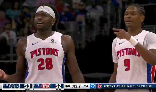 次节比赛,活塞进攻回暖首次单节得分30+,且限制奇才首次单节得分不足25分。活塞前3分钟被拉开23-45落后22分差距,活塞一波6-0攻势追分,奇才连得5分扩大21分优势,活塞强势打出一波23-3攻势追到仅差1分。莱利三分命中,活塞单节31-22追回9分,上半场结束活塞追到52-56落后奇才。前两节比赛,奇才三分22中8,尚帕尼3记三分14+6;活塞三分仅17中2,坎宁安10中4得到12+6+3+1帽。